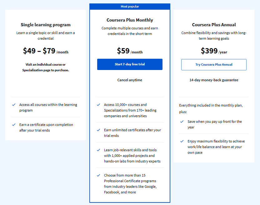 π Coursera Plus Pricing (With Up to 50% OFF for Students)