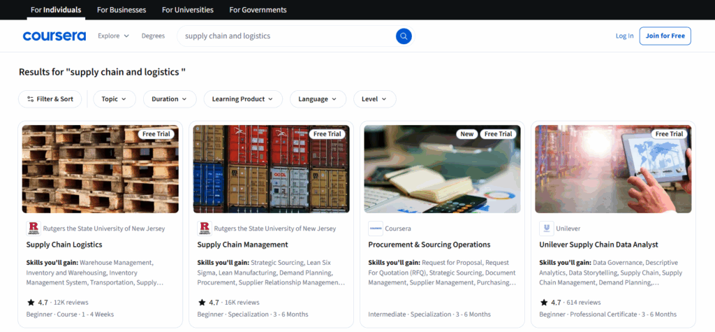 ❓ Is Coursera good for learning supply chain and logistics?