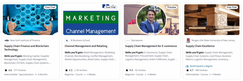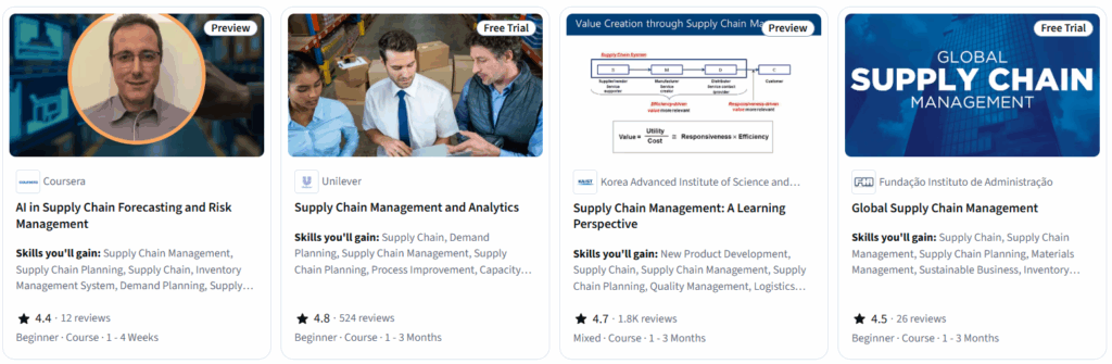 Yes. Coursera offers industry-recognized supply chain and logistics courses from top universities. These courses help build strong fundamentals, practical understanding, and job-ready skills when followed in the right order.